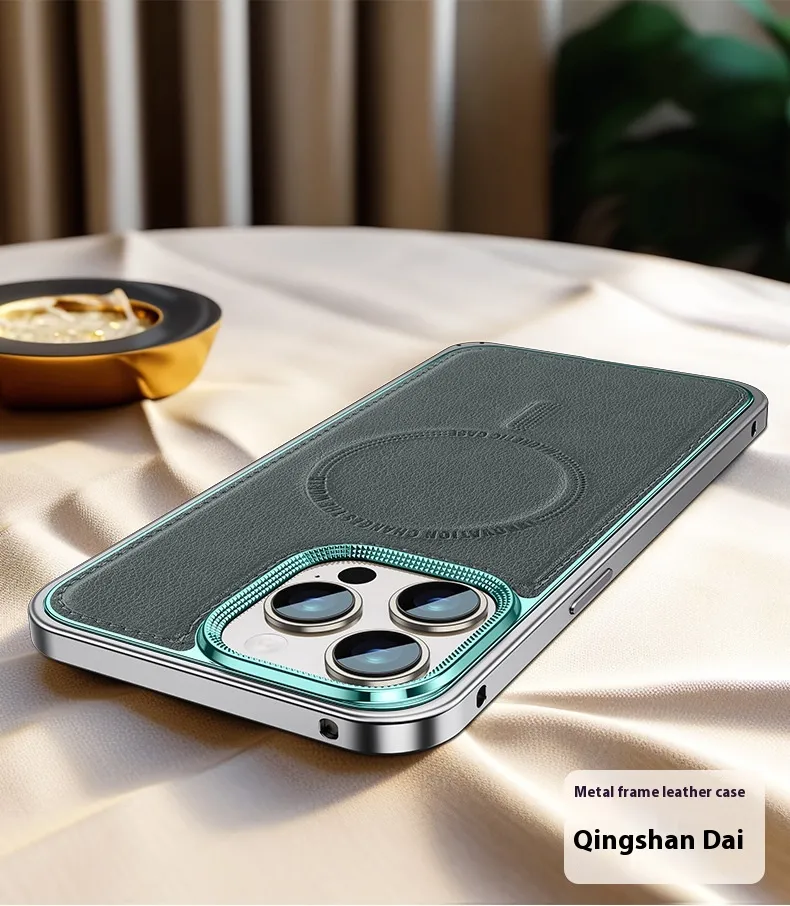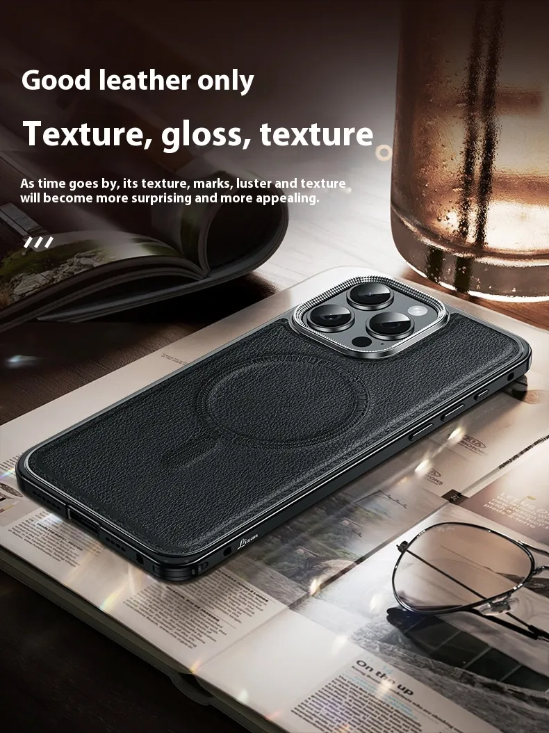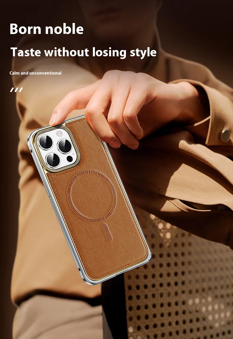 Phone Case Spring Fastener Leather Pattern Cover Drop-resistant Magnetic Suction