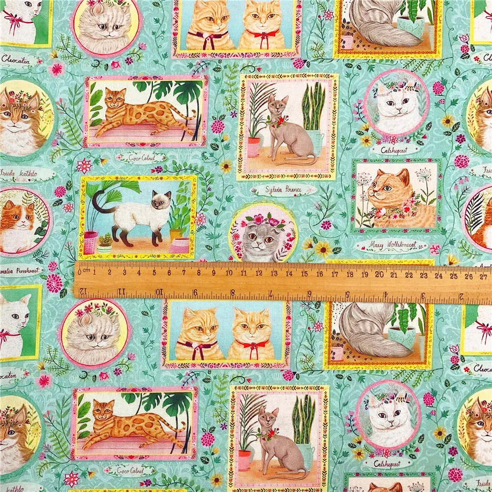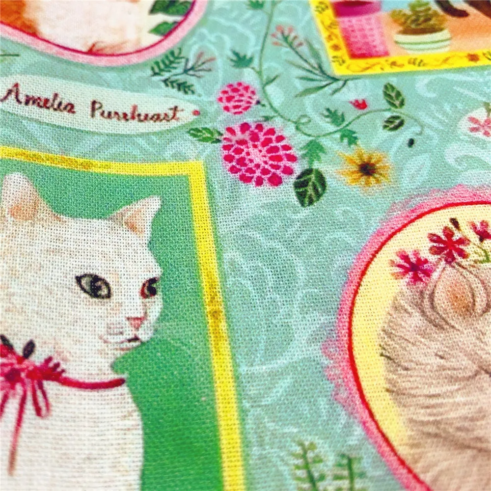Photo Frame Floral Cat Print Fabric
