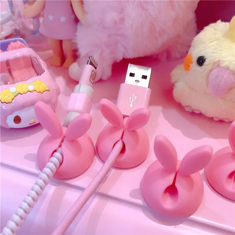 Pink Bunny Ears 4 PCs Data Cable Table Fixer: Cute and Practical Cable Management