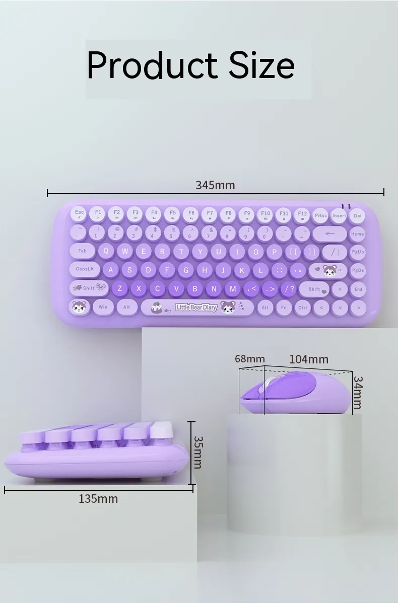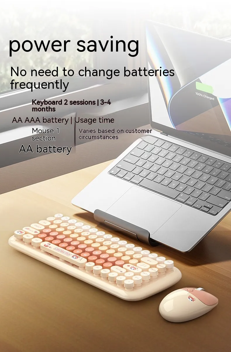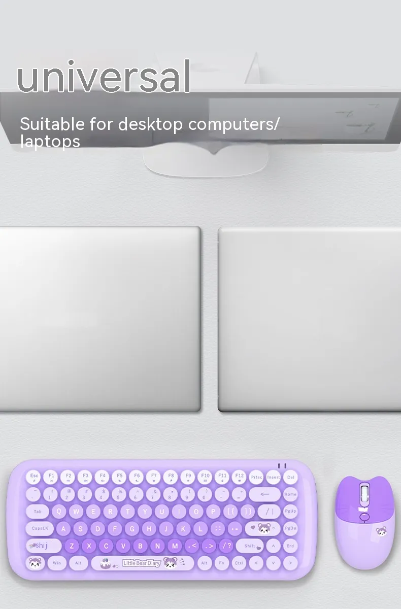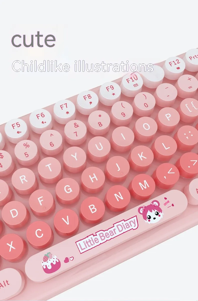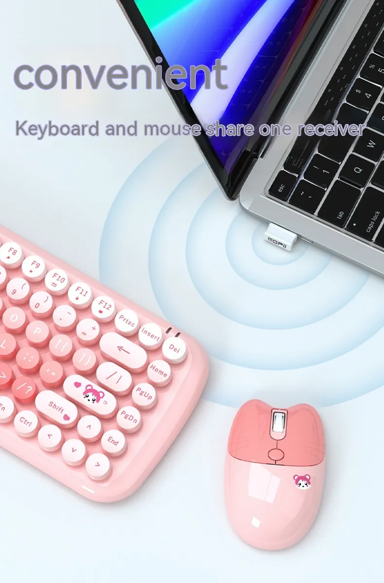 The Pink Mini Cute Cartoon Wireless Keyboard and Mouse Set is the perfect combination of style, comfort, and functionality. Whether you're using it for work, study, or casual use, this set provides a fun, reliable, and ergonomic solution for all your computing needs. Its cute design, compact size, and wireless convenience make it the ideal choice for anyone looking to add a touch of personality to their workspace while enjoying the benefits of modern technology.