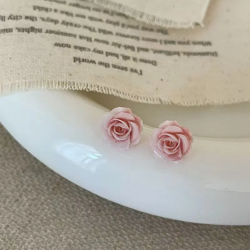 Featuring a dainty rose shape in soft pink, these stud earrings highlight elegance and romance. Their minimalistic yet stylish design makes them suitable for all ages.