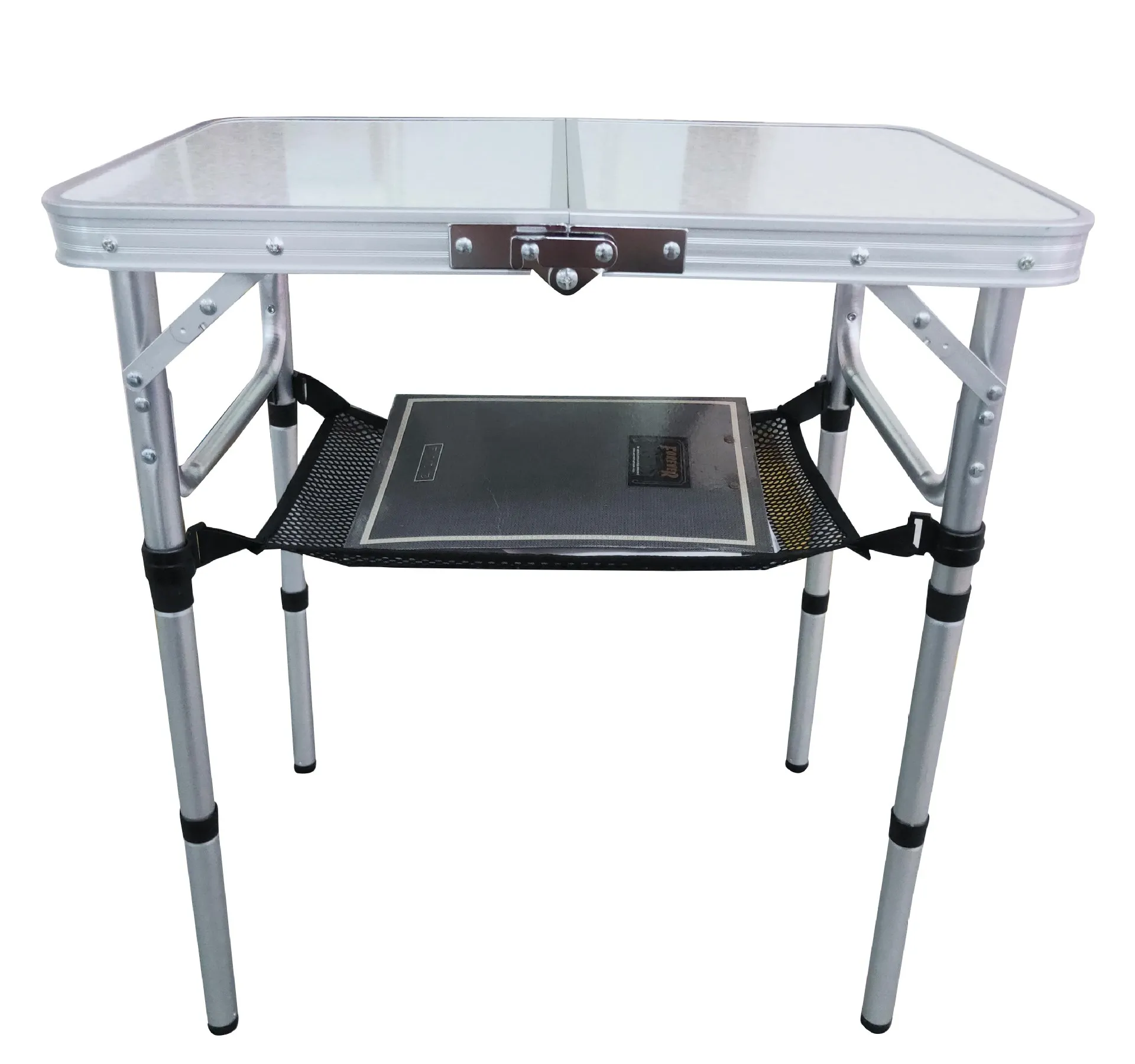 Set Up the Table: Unfold the table by releasing the locking mechanism on the legs. Extend the legs and lock them securely