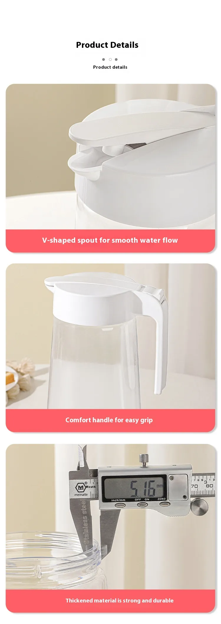 Ergonomic Handle: The comfortable handle ensures easy pouring, providing a secure grip even when the jug is full.