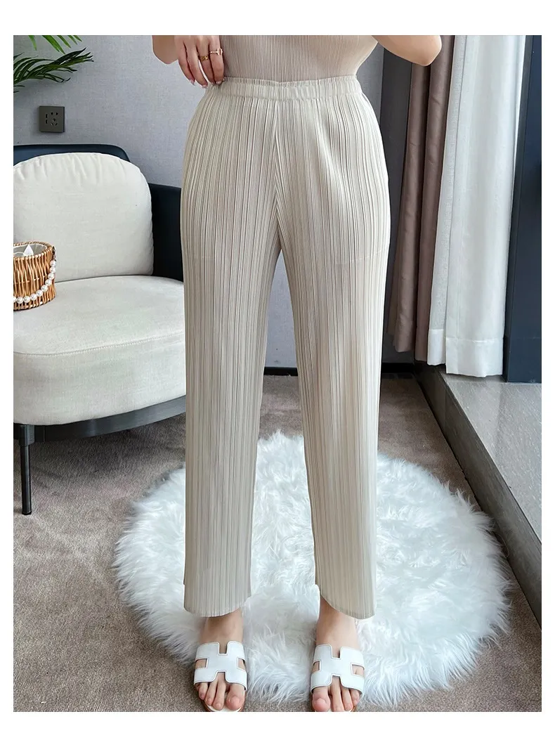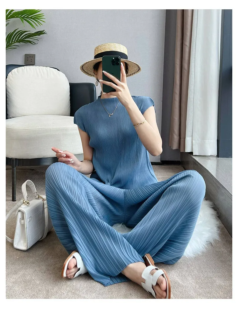 Designed to flatter a variety of body shapes, the Pleated Summer Clothes Two-Piece Suit enhances your natural curves while providing a relaxed, comfortable fit. The loose fit of the pants and the flowy top ensures that the outfit accommodates different body types, offering a stylish solution for every woman. The elastic waistband on the pants ensures a comfortable fit that moves with your body, while the pleated top adds structure without being restrictive.