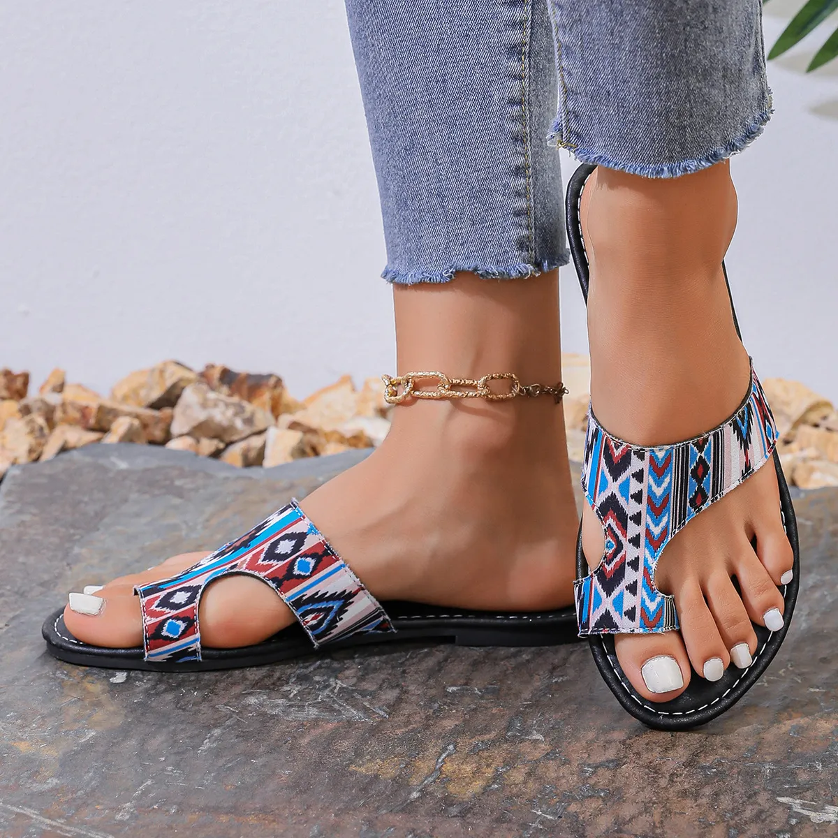 Elevate your summer footwear collection with the Plus Size Printed Ethnic Style Casual Toe-Covering Flip-Flops. Designed for comfort and cultural flair, these flip-flops feature vibrant ethnic-inspired prints and a unique toe-covering design. Perfect for casual outings, beach days, or relaxed evenings, these flip-flops combine practicality with a stylish edge, making them a standout choice for fashion-conscious individuals who value comfort.