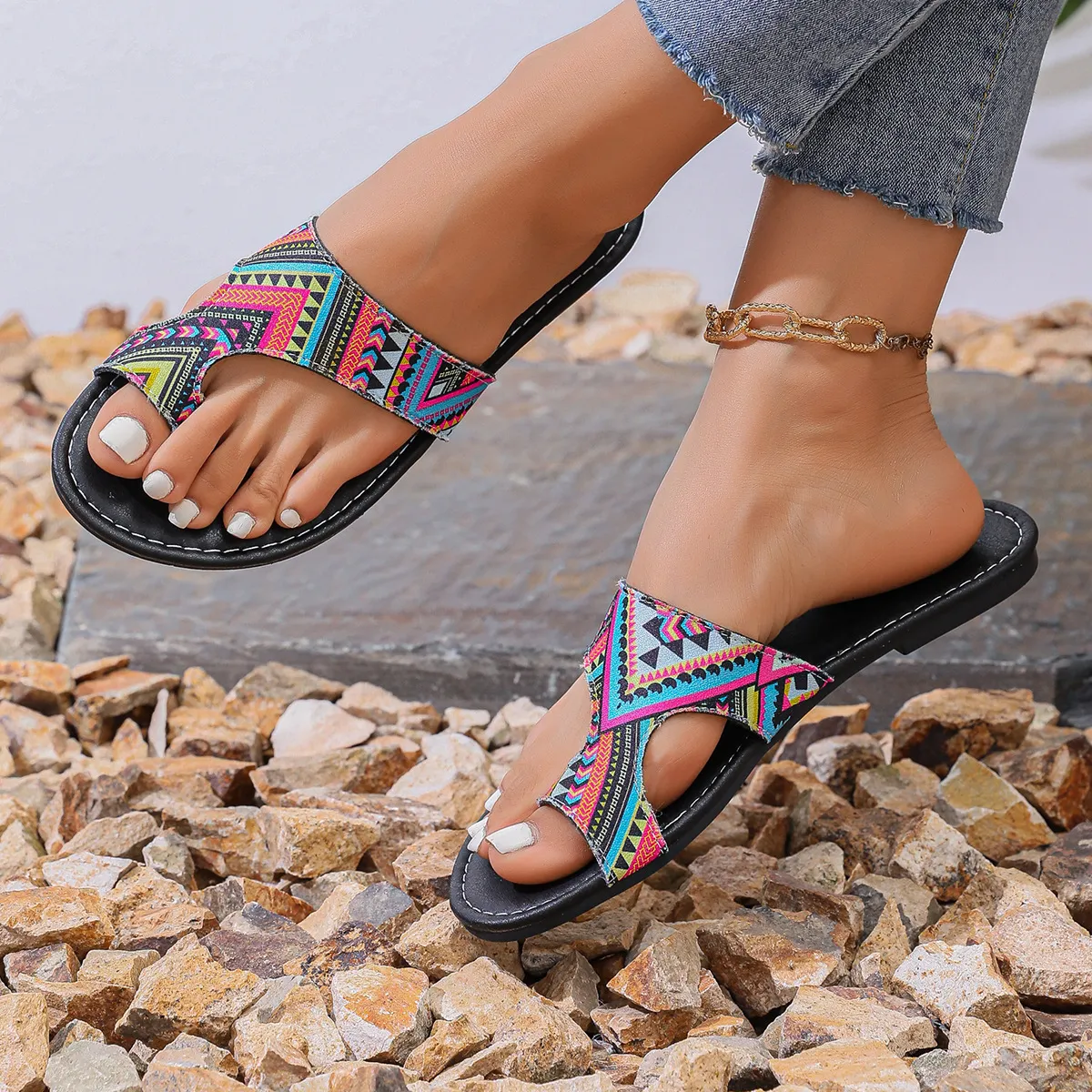 Plus Size Printed Ethnic Style Casual Toe Covering Flip-flops