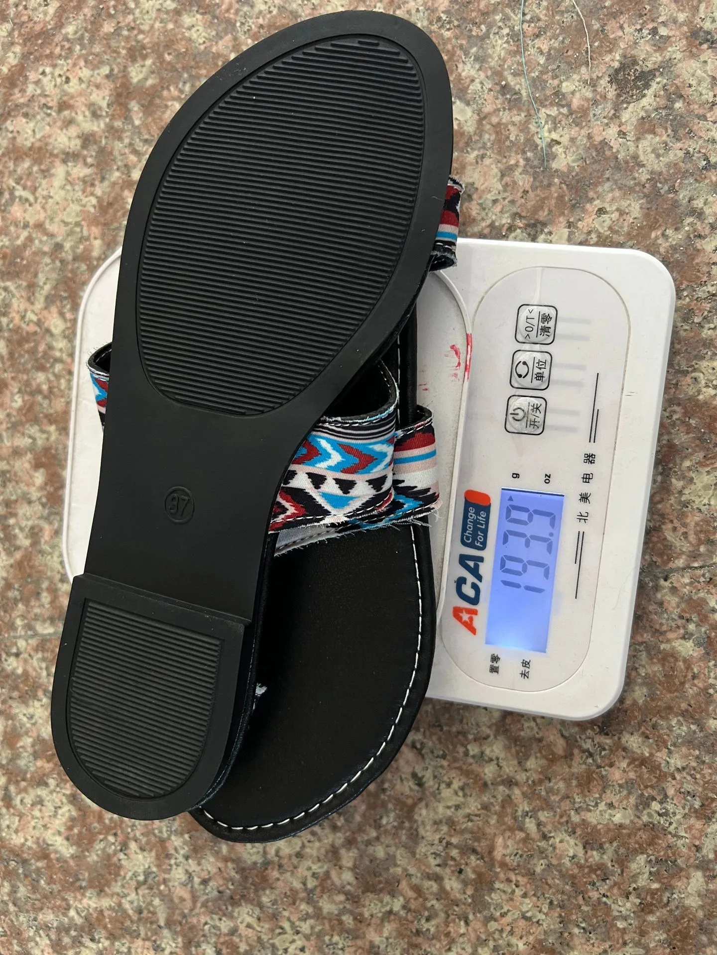 | Design | Toe-covering with ethnic-inspired prints |