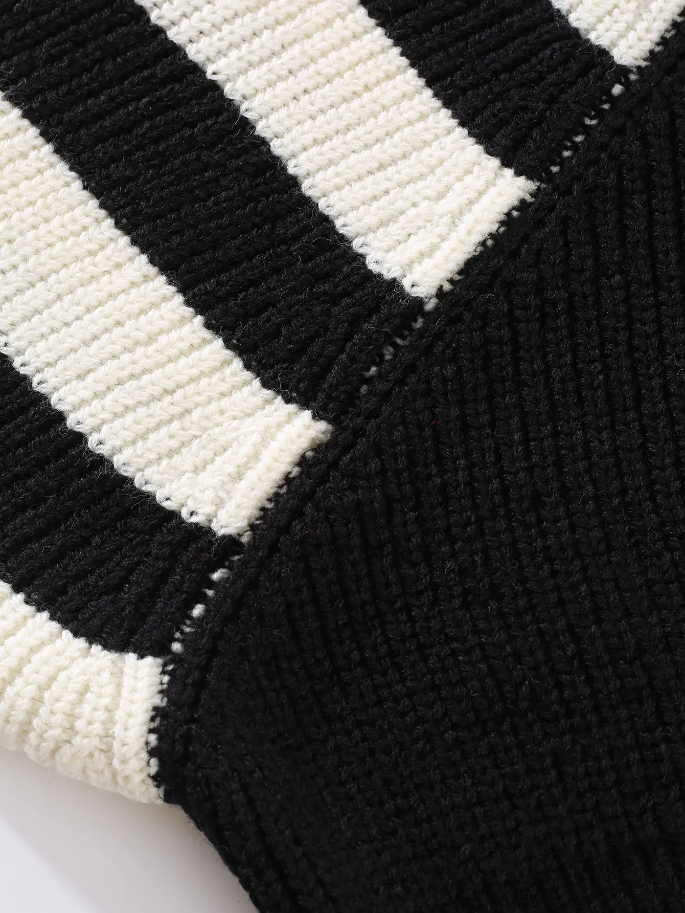 Contrast Stripe Design: The bold contrast stripes add a modern touch, making this sweater a standout piece in your