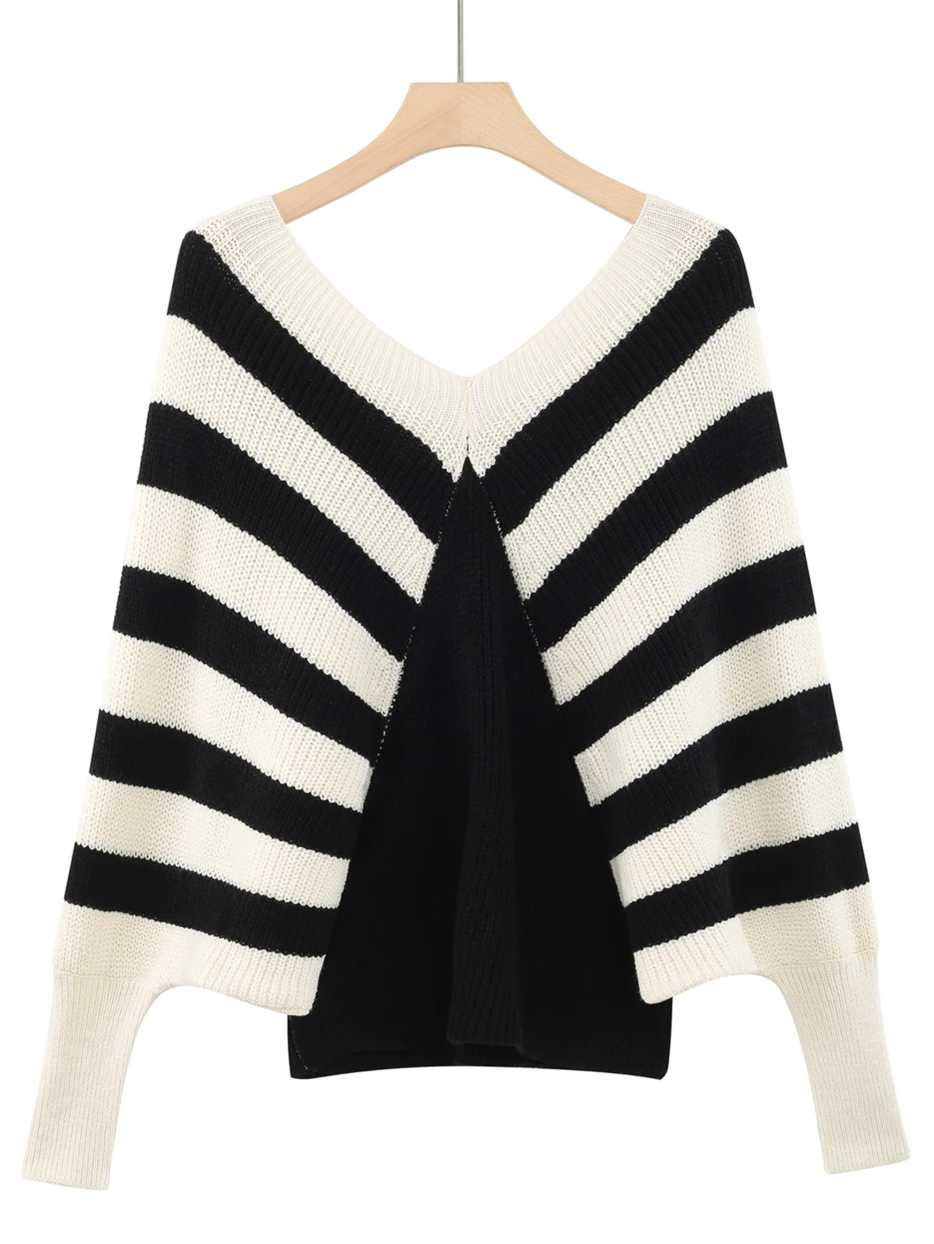 Why Choose the Plus Size Stripe Contrast Color V-neck Long-sleeve Knitwear?