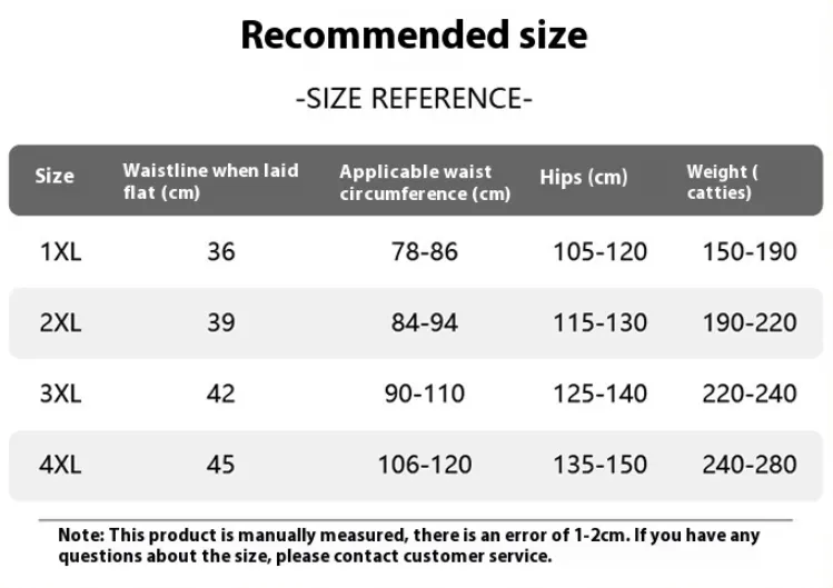 Size: 1XL 75.00kg-95.00kg,2XL 95.00kg-110.00kg,3XL 110.00kg-120.00kg,4XL 120.00 kg-140.00kg
