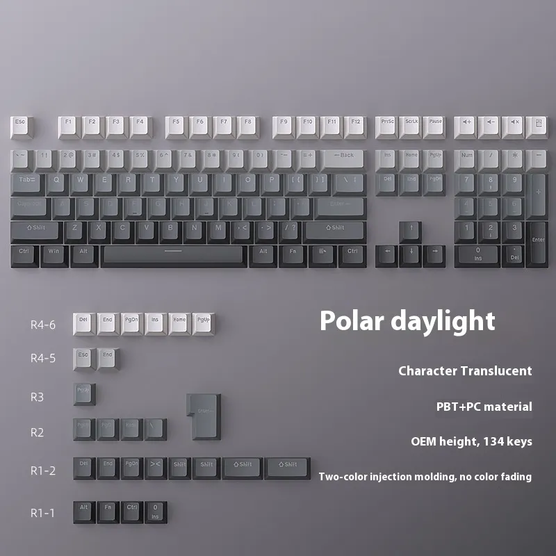 Constructed from durable materials, this machinery key cap provides both aesthetic appeal and functionality. The high-quality material ensures that the keycaps are resistant to wear and fading, offering long-lasting durability. Perfect for gamers, typists, and anyone looking to customize their keyboard, this keycap not only enhances the look of your setup but also provides a comfortable, responsive typing experience. With its unique polar day gradient effect, this keycap brings both style and performance to your keyboard.