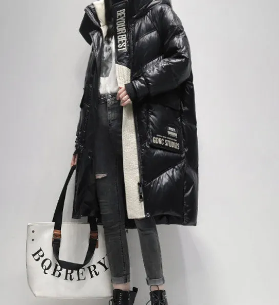 Polished Black Down Jacket Women's High-end Mid-length Coat