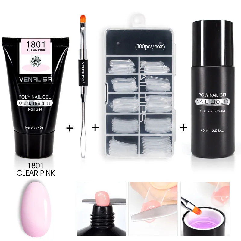 The set includes: crystal glue + double-headed phototherapy pen + 75ml manicure pen water + 100 pieces of extended nail