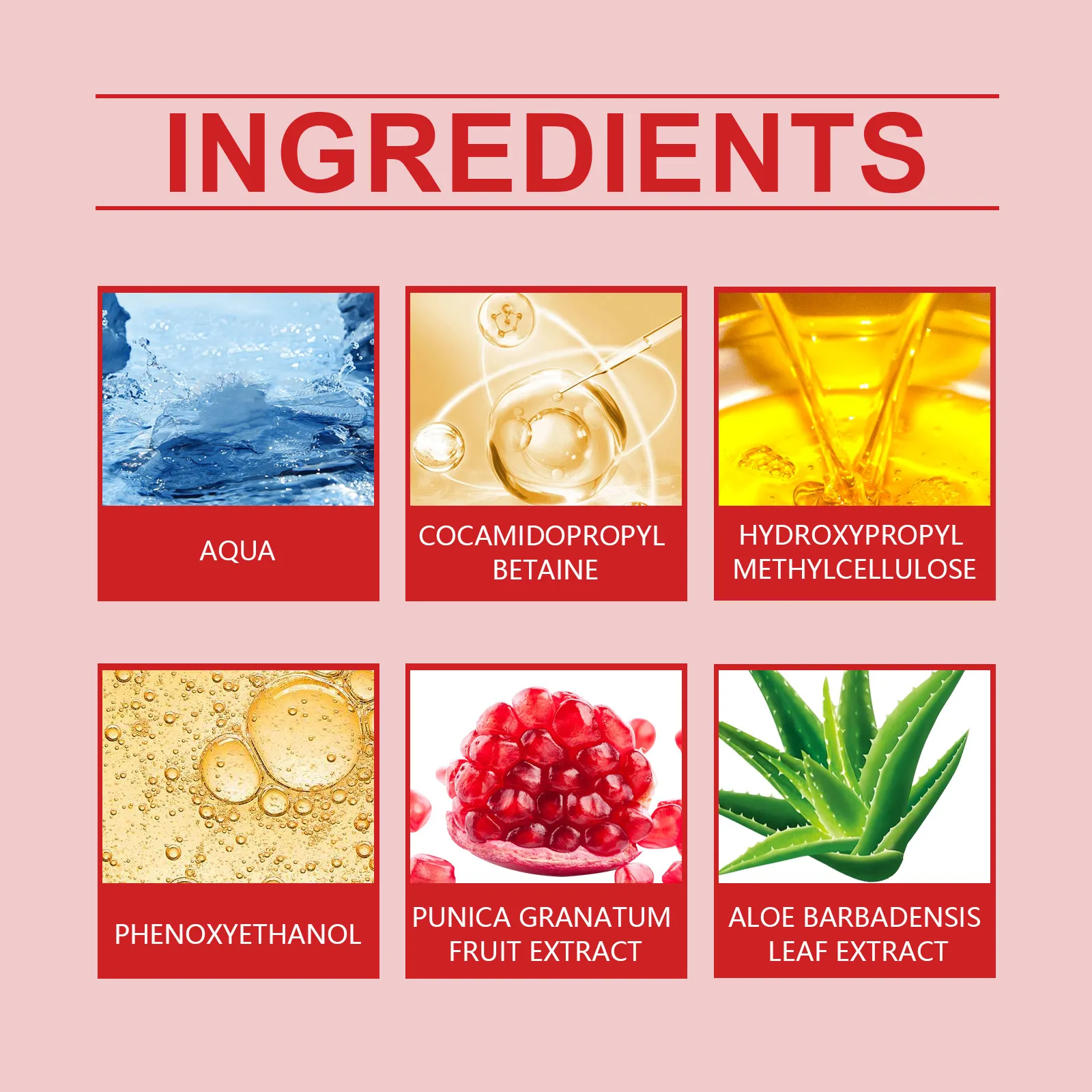 Ingredients: water, coconut oil amidopropyl betaine, hydroxypropyl methyl cellulose, phenoxyethanol, pomegranate extract, aloe extract
