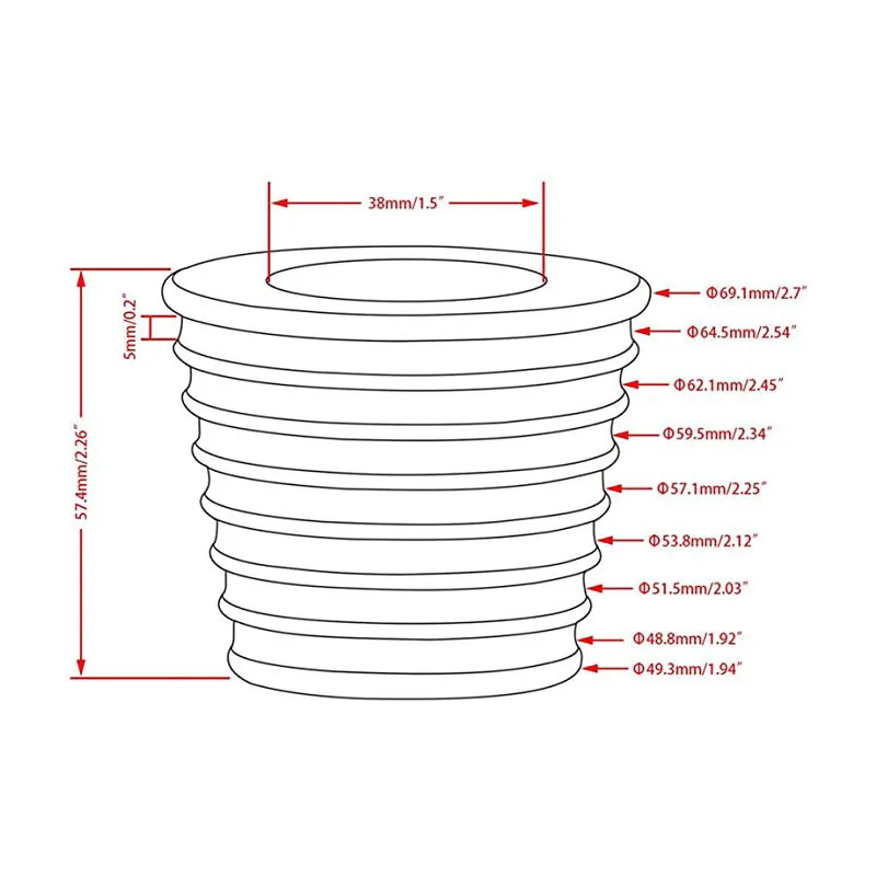 Size: inner diameter 38mm, minimum outer diameter 50mm, maximum outer diameter 69mm