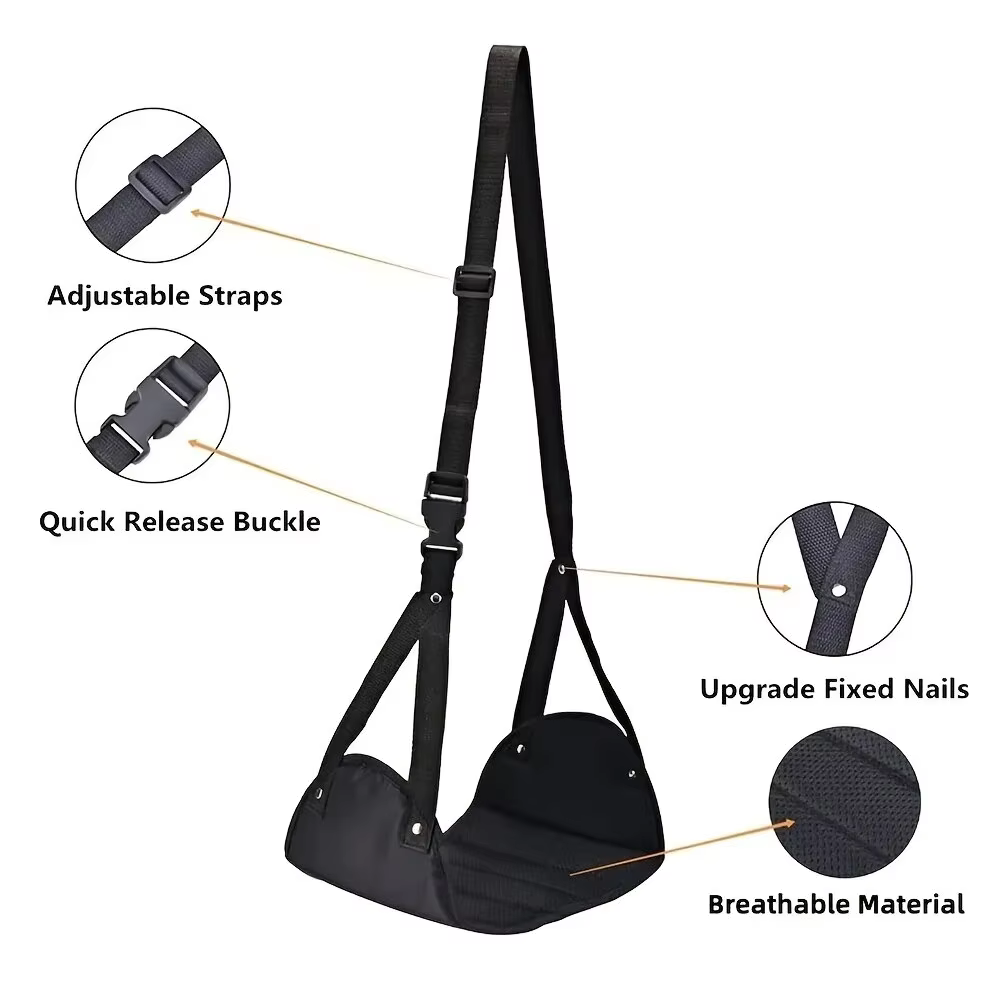 Make long flights more comfortable with this Portable Airplane Footrest, featuring an adjustable strap and lightweight hammock design that provides exceptional support for your legs and feet during travel. Ideal for reducing discomfort and leg fatigue, this footrest is designed to hang from your tray table, creating a comfortable resting spot for your feet. Its compact and lightweight design makes it easy to pack in your carry-on, ensuring you can bring comfort with you wherever you go.