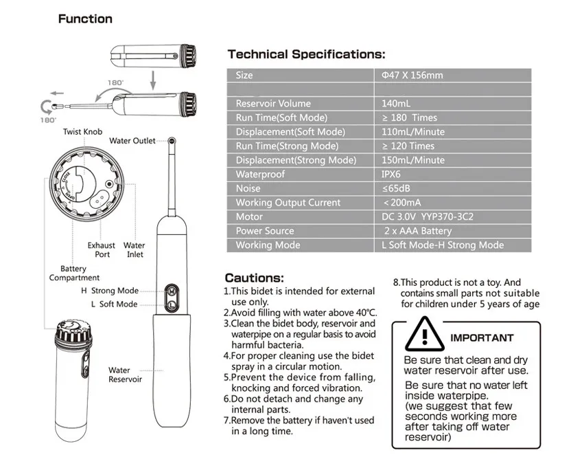 Easy to Use: With a simple design, the portable bidet allows you to wash with ease and comfort, providing a more thorough