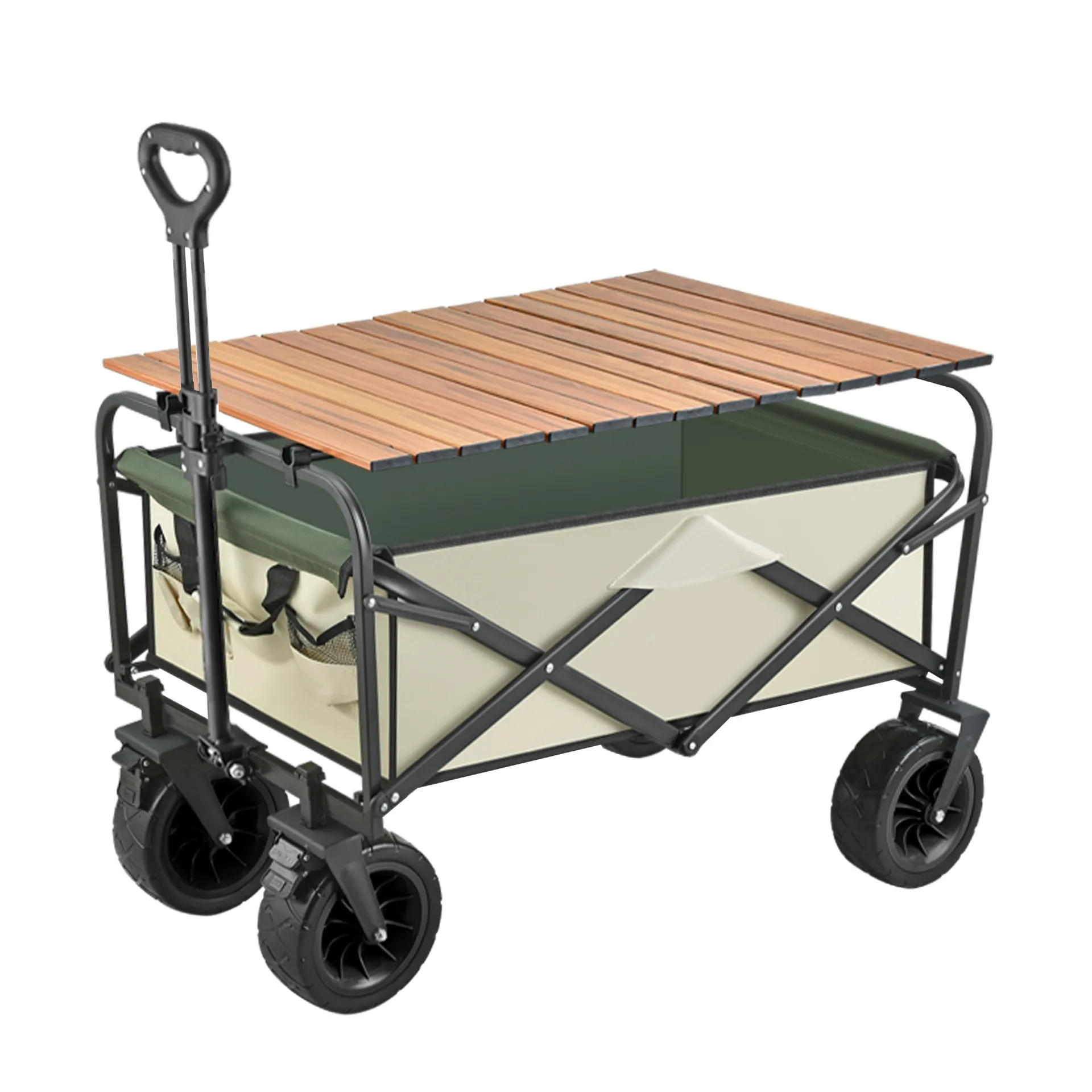 Its sturdy frame, spacious cargo area, all-terrain wheels, and foldable design make it an indispensable tool for camping trips, beach days, market shopping, and more.
