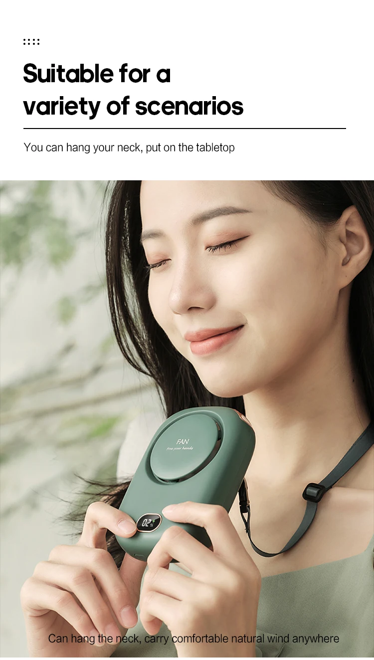 Versatile and functional, this fan can be worn around the neck with a soft, adjustable lanyard or clipped to your waist, providing hands-free cooling while you engage in various activities.