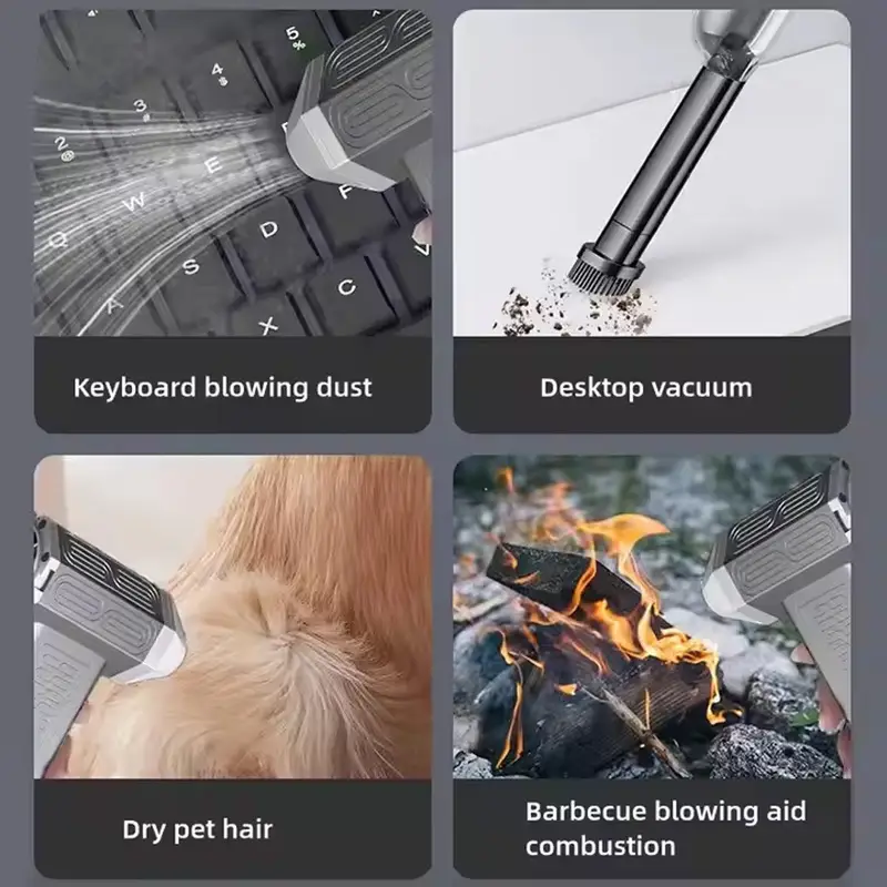 This cordless fan comes with a rechargeable battery, making it portable. It serves multiple cleaning purposes, ideal for clearing dust and dirt from keyboards, computers, car interiors, or tight spaces. Its compact and lightweight design ensures easy handling and storage.