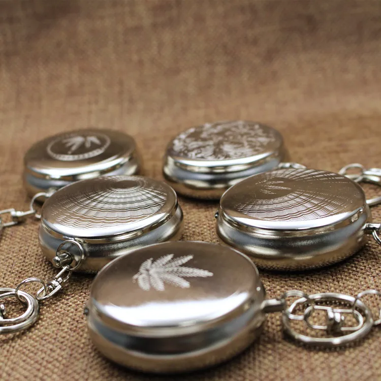 Portable Metal Small Ashtray Round Environmental Protection Ashtray With Keychain