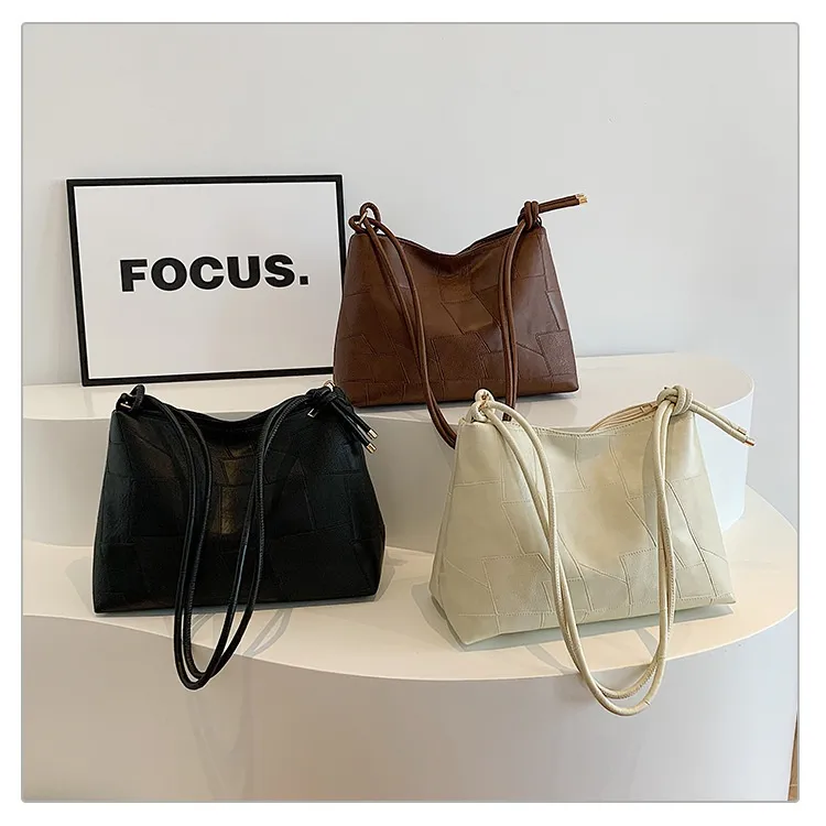 Portable One Shoulder Retro Large Capacity Fashion Solid Color Casual Tote Bag