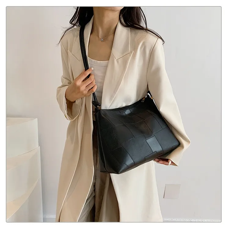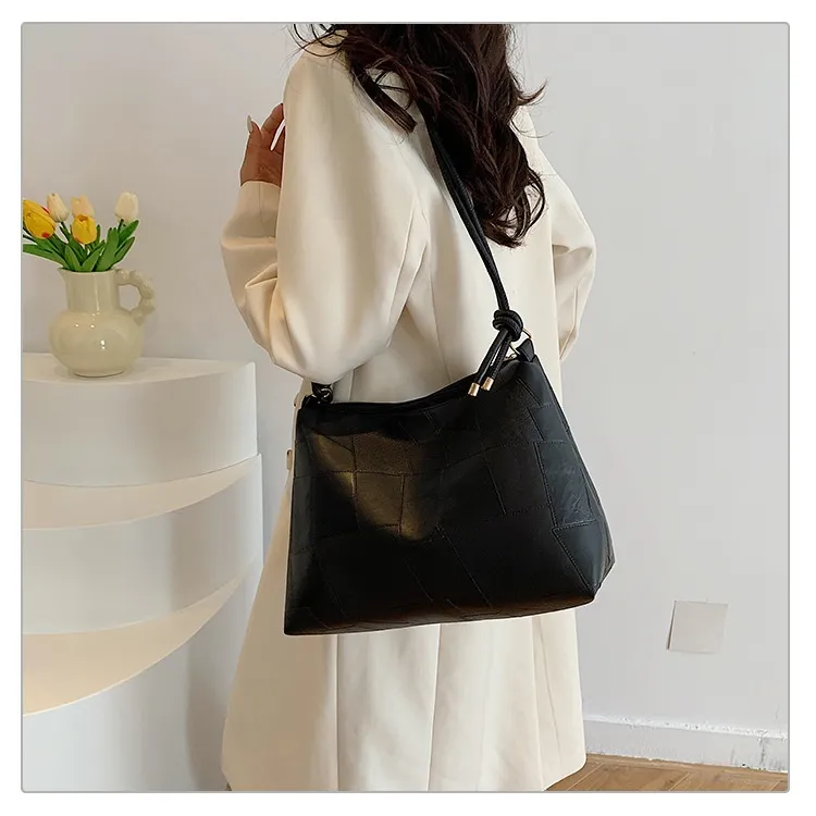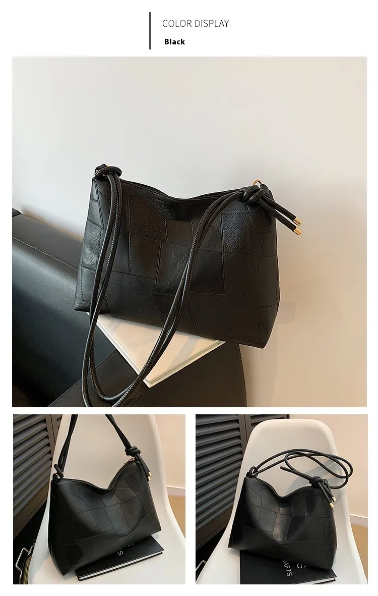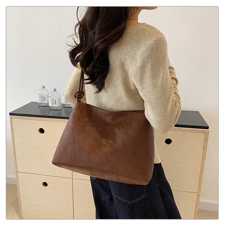 Portable One Shoulder Retro Large Capacity Fashion Solid Color Casual Tote Bag