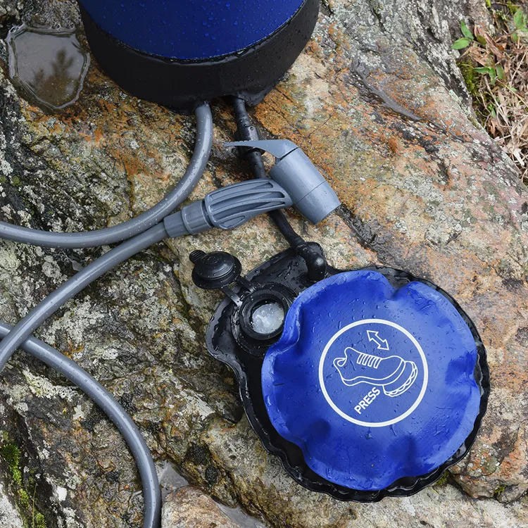 1, Easy Foot Pump: The Camp Shower Bag adopts a newly designed foot pump with a large, highly elastic mesh sponge that bounces by itself,