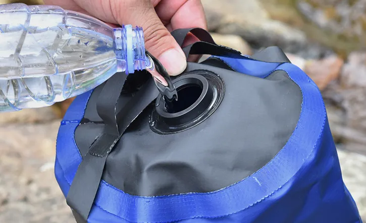 - Step 1: Fill the shower bag with clean water, ensuring the opening is properly sealed.