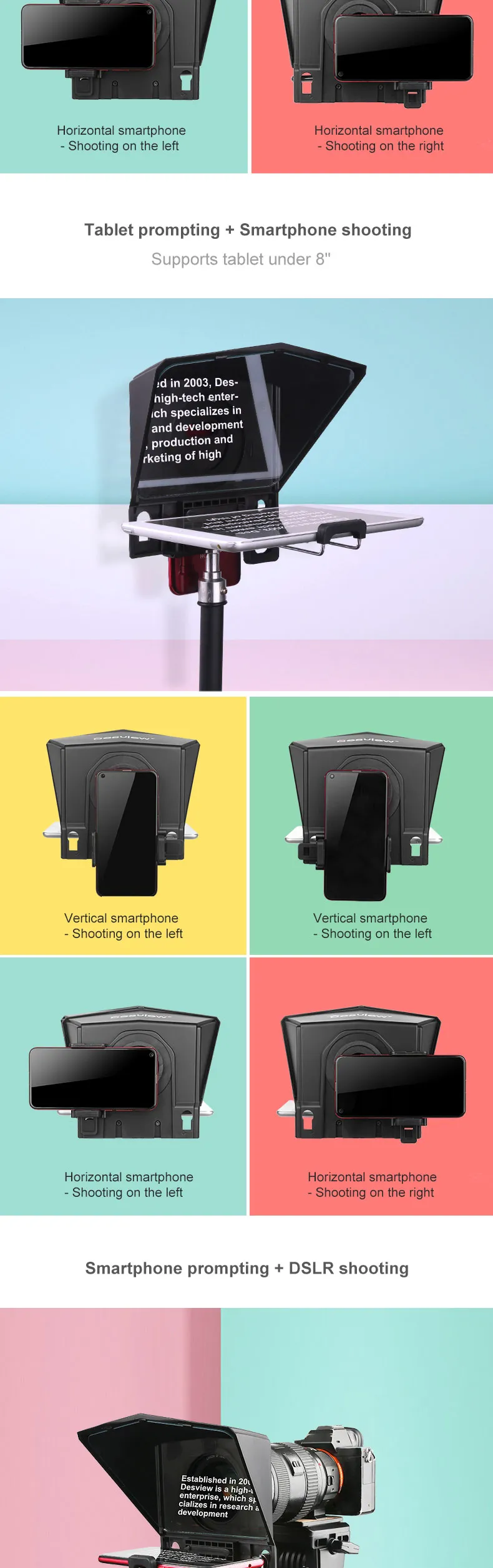 Enhance your video recording and presentation skills with the Portable Small Cell Phone Teleprompter. Designed for content creators, educators, and professionals, this compact teleprompter allows you to deliver your message with confidence and clarity. Its lightweight, foldable design makes it incredibly easy to transport, making it perfect for on-the-go shooting or use in various locations. Whether you're filming YouTube videos, conducting interviews, or giving presentations, this teleprompter ensures you stay on script without losing eye contact with your audience.