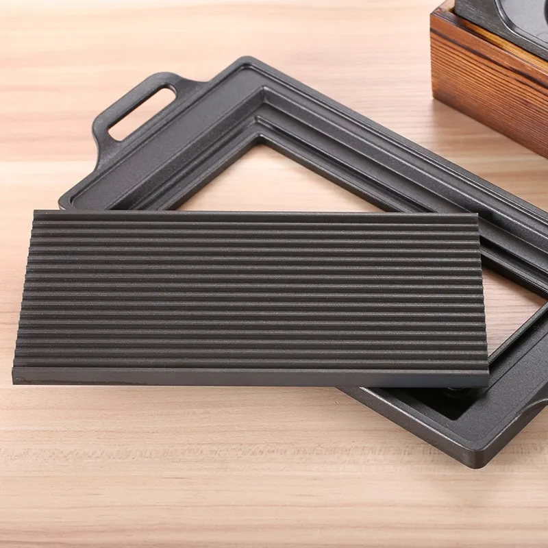 Specifications (Length*Width*Height): 35x21cm wooden-seat rectangular barbecue grill (for 2 people), 28x15cm wooden-seat rectangular