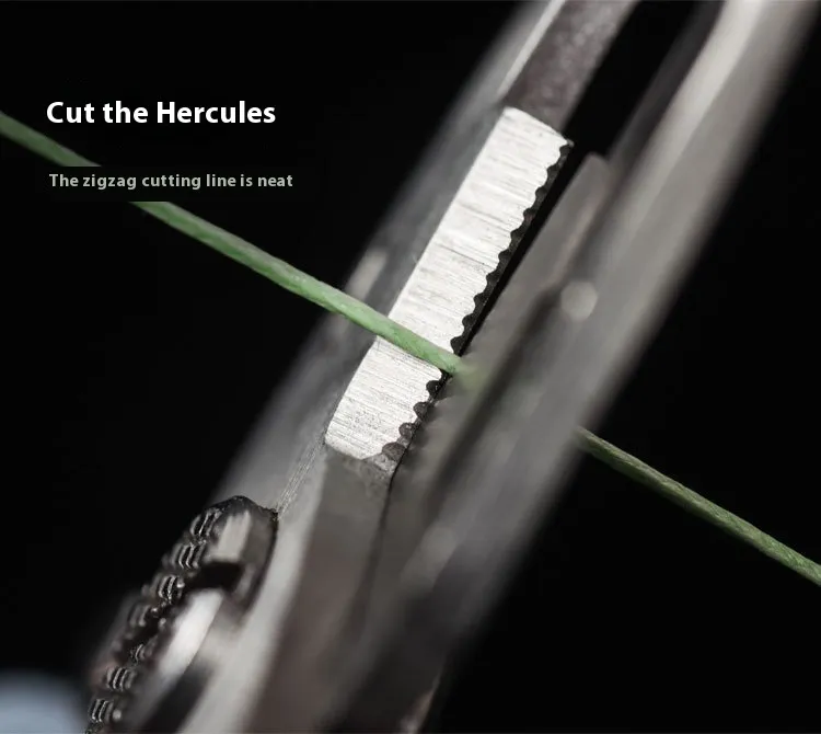 Serrated knife edge, cutting line is neat, and fish hooks can be tied.