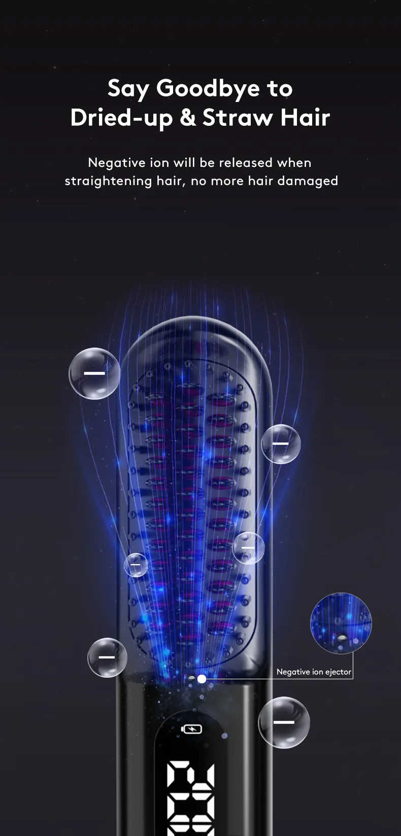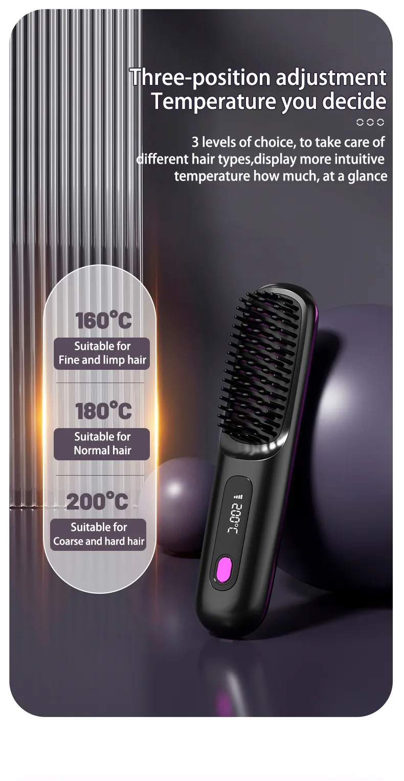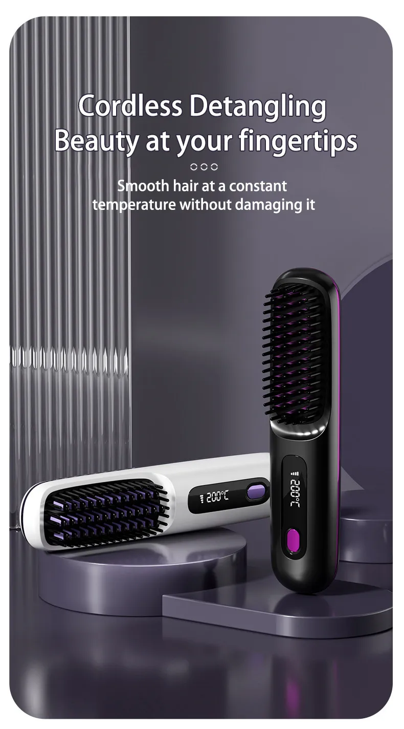 Effortless and Efficient Styling: Our wireless hair straightener brush features advanced heating technology that quickly reaches your desired temperature.Â