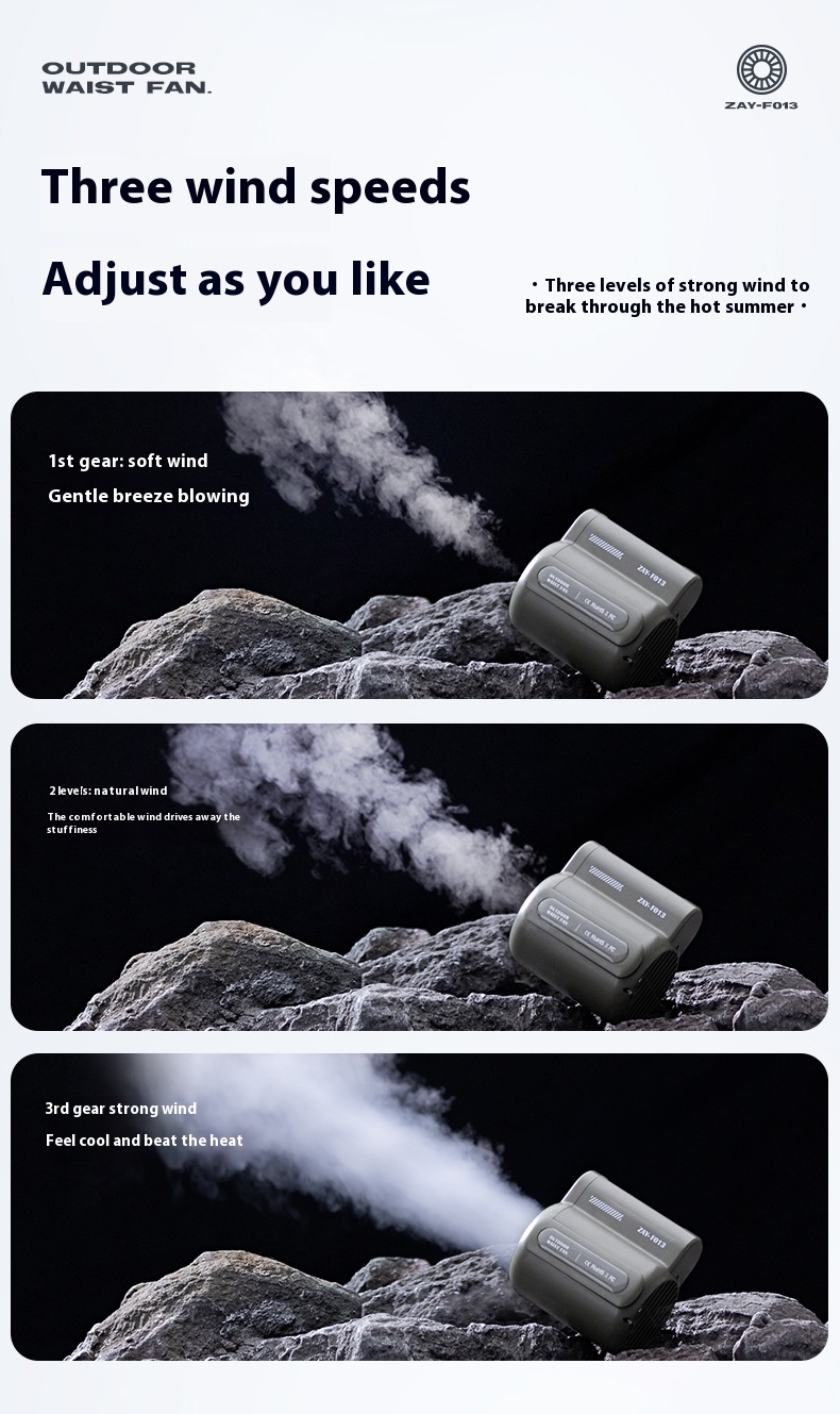 2. Adjustable Airflow: With three adjustable speeds, the waist fan lets you personalize your air flow and stay hands-free for unrestricted movement during outdoor activities.