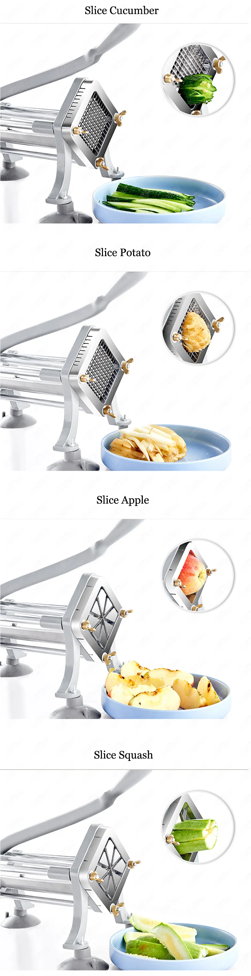grids, that allows you to slice potatoes quickly and evenly. This ensures that all the fries are uniform in size and cook consistently.