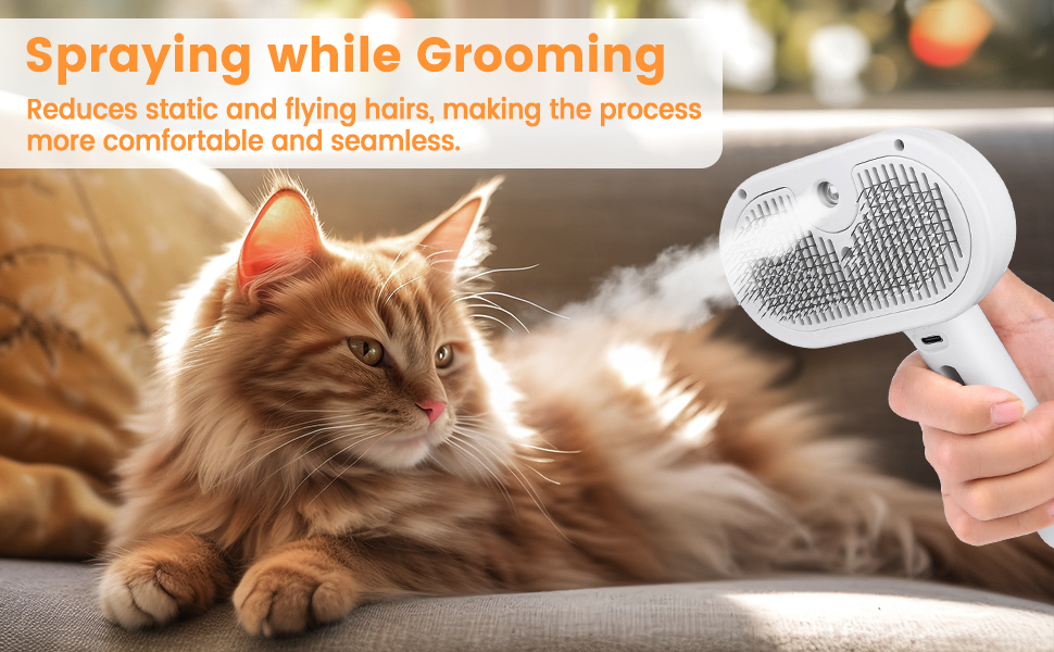 - 【Cat Steam Brush】Experience a comfortable grooming session with our mist spray function. Simultaneously spraying while grooming reduces static and flying hairs, making the process more comfortable and seamless. This helps to minimize tangling and knotting issues. You can add conditioner or softening agents to the spray, enhancing your cat's hair softness and shine. 【Note】Our cat brush only turns water into mist, not heating water into hot vapor.