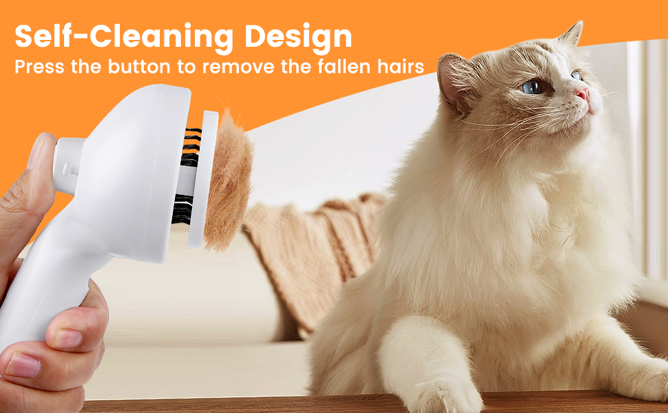 - 【Self-Cleaning Cat Brush】Our cat brush features a self-cleaning function. After grooming, simply press the cleaning button, and the hair easily falls off from the bristles, making cleanup hassle-free without hair scattering everywhere.