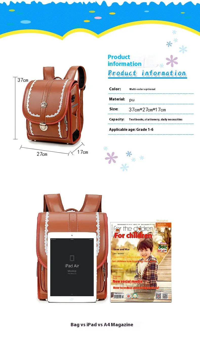 Crafted with high-quality materials, this bag offers durability and comfort, making it perfect for primary school students. Its adjustable shoulder straps ensure a comfortable fit, while the waterproof feature provides peace of mind in unpredictable weather conditions.