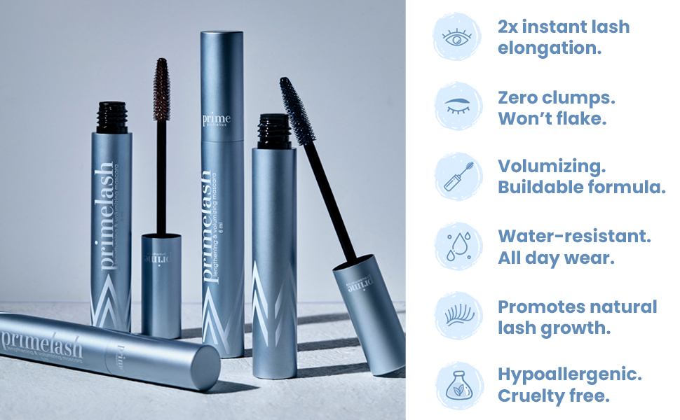 - EASY TO REMOVA MASCARA, ZERO LASH BREAKAGE – As we mature, our eyelashes get thinner and shorter. Prime Prometics PrimeLash Mascara lets you flaunt intense lash length and volume in 2 coats while nourishing & strengthening your natural lashes as you go.