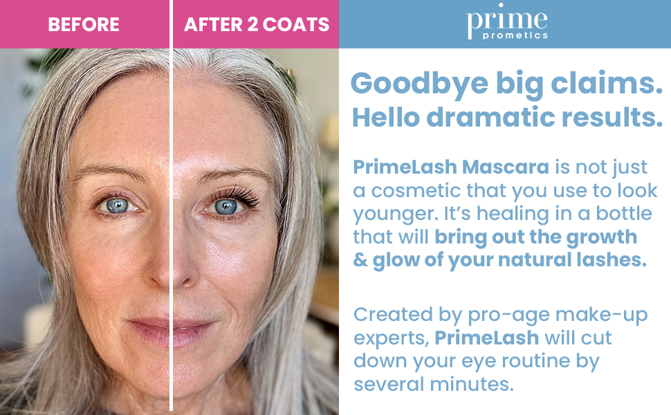 - MASCARA FOR WOMEN OVER 50 – Unlike other mascaras in the market, Prime Prometics PrimeLash Mascara was developed together with 1200 mature queens, to solve your biggest lash woes. It is non-clumping and acts as a hypoallergenic mascara for sensitive eyes.