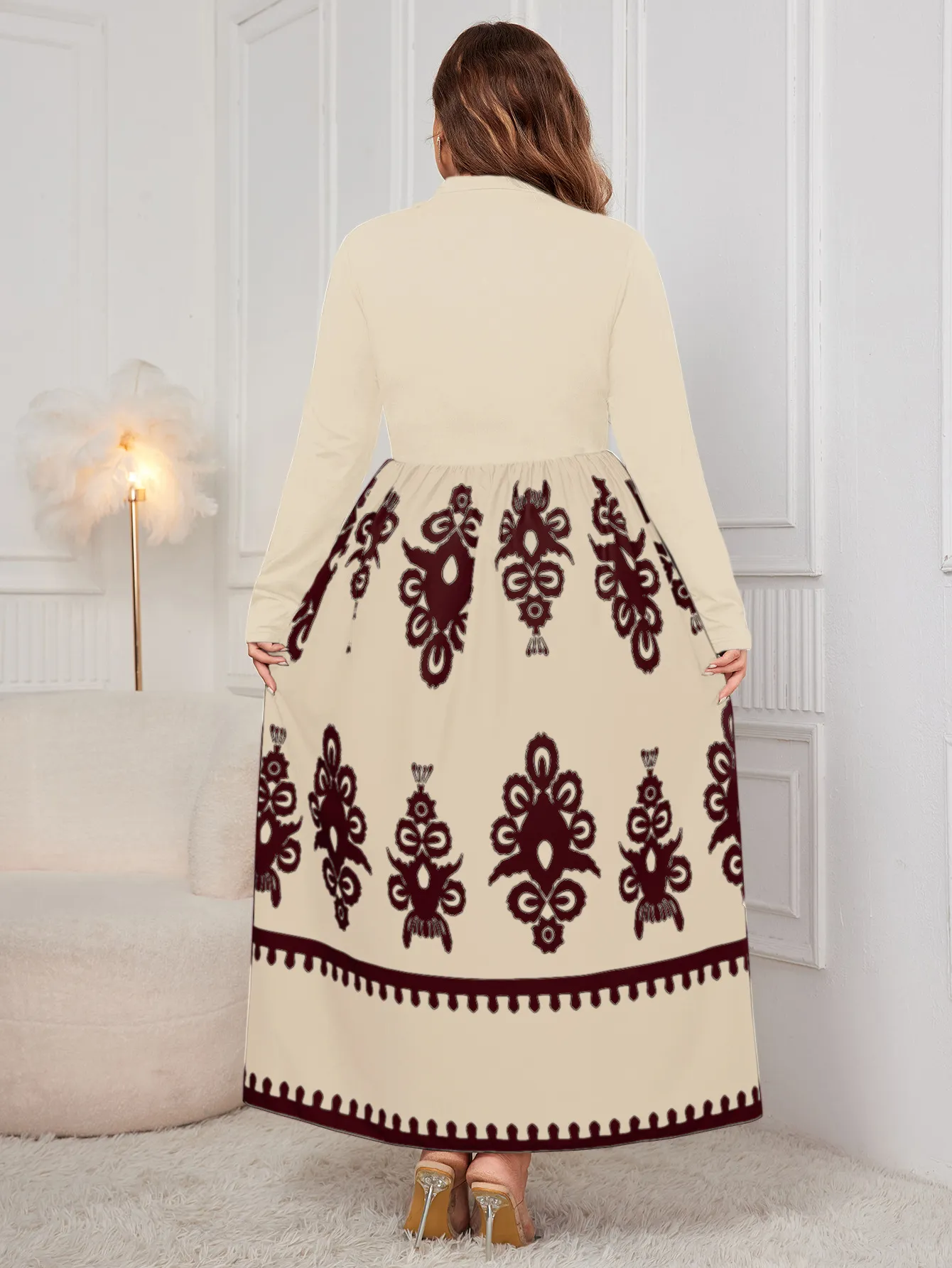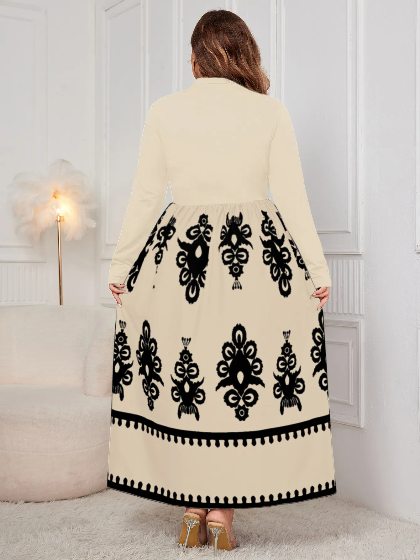 Why Choose the Printed Black Plus Size Loose Long Sleeve Dress?