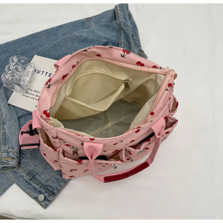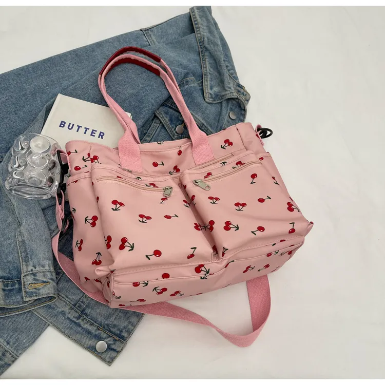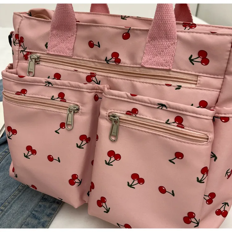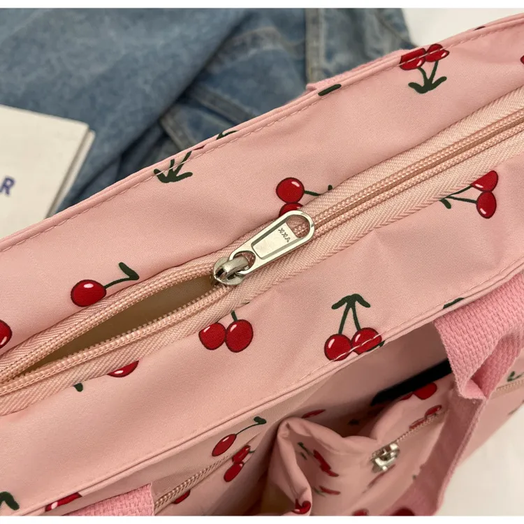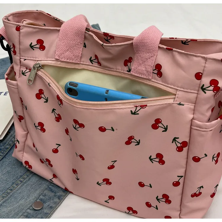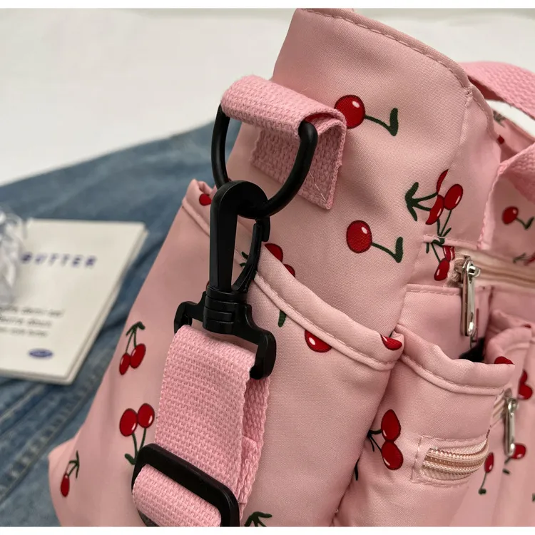 This bag is more than just an accessory—it's a fun, expressive way to enhance your personal style. Whether you're running errands, attending a casual gathering, or simply enjoying a sunny day, this bag combines fashion with functionality. Its charming cherry print and practical features make it an ideal choice for women who want a bag that's as cute as it is useful.