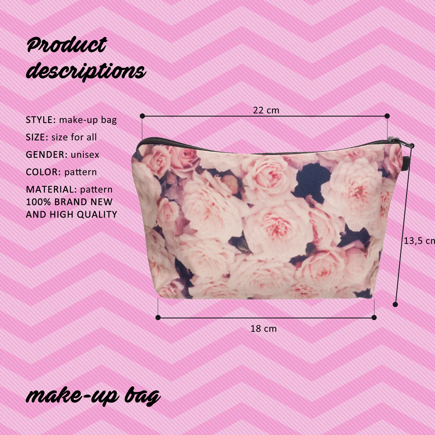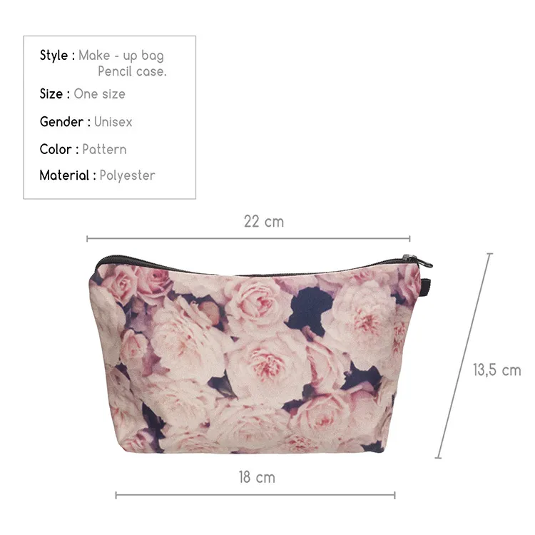 Printed Rose Cosmetic Bag