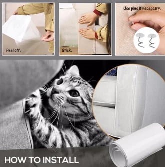Just peel off the sticky covering, apply them to your cat's favorite scratching spots, and for added stability, use the included tacks. It's