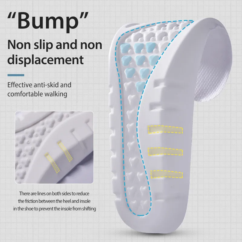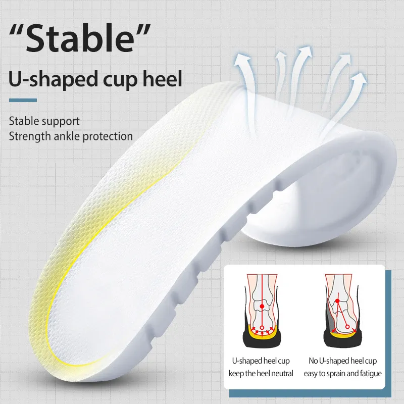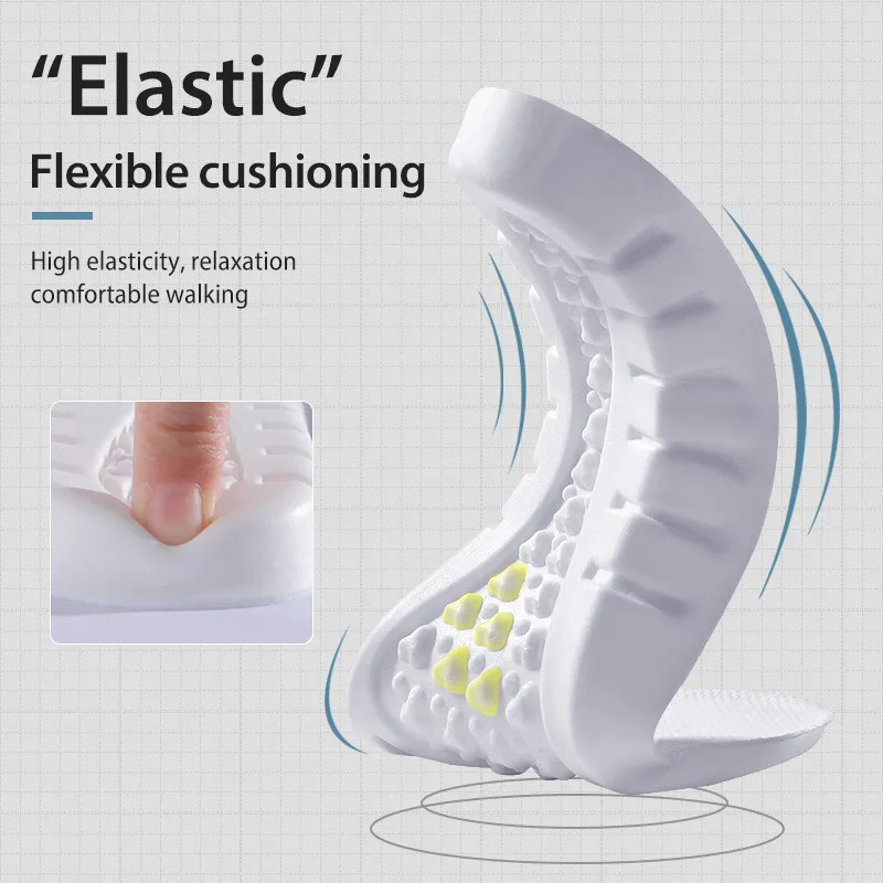 Made from high-quality PU material, these insoles provide a soft and elastic feel that molds to the shape of your feet, offering customized comfort. The elastic design allows for flexibility, ensuring that the insoles move with you as you walk, run, or jump. This feature ensures long-lasting comfort, even after hours of use.