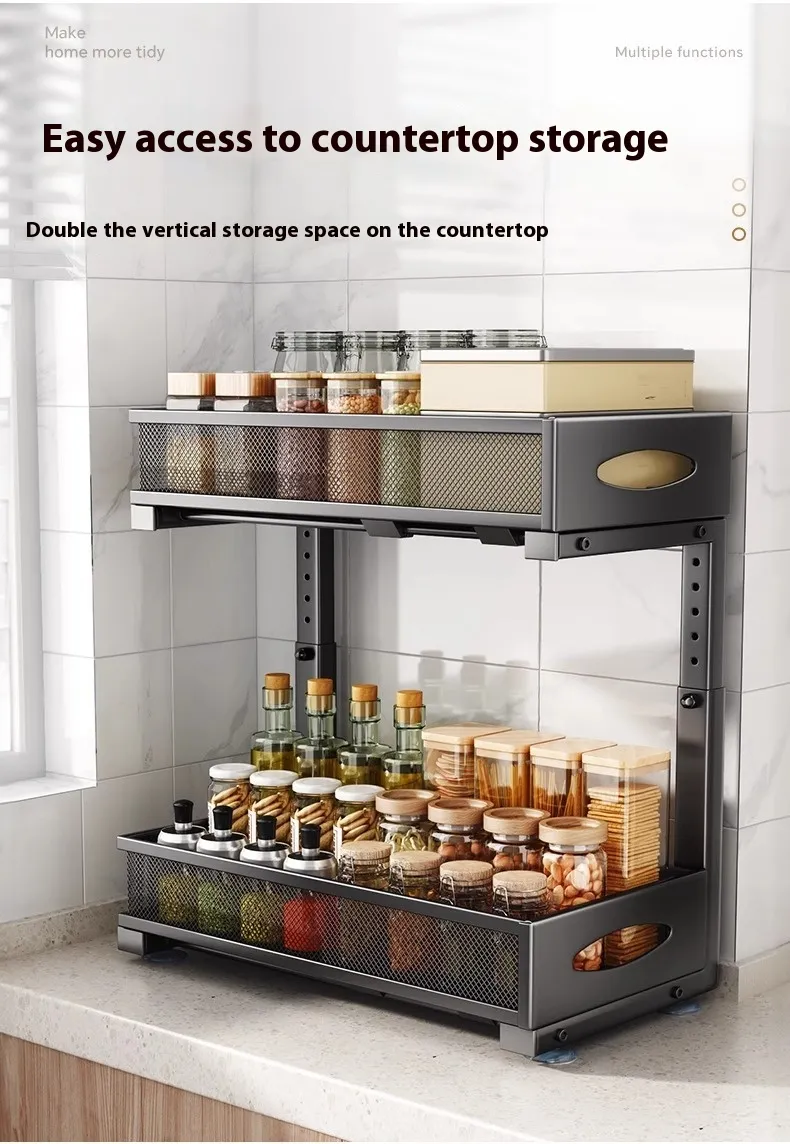 With its double-layer design, this drawer provides ample storage space for organizing kitchen essentials, helping you maximize your kitchen's storage capacity.