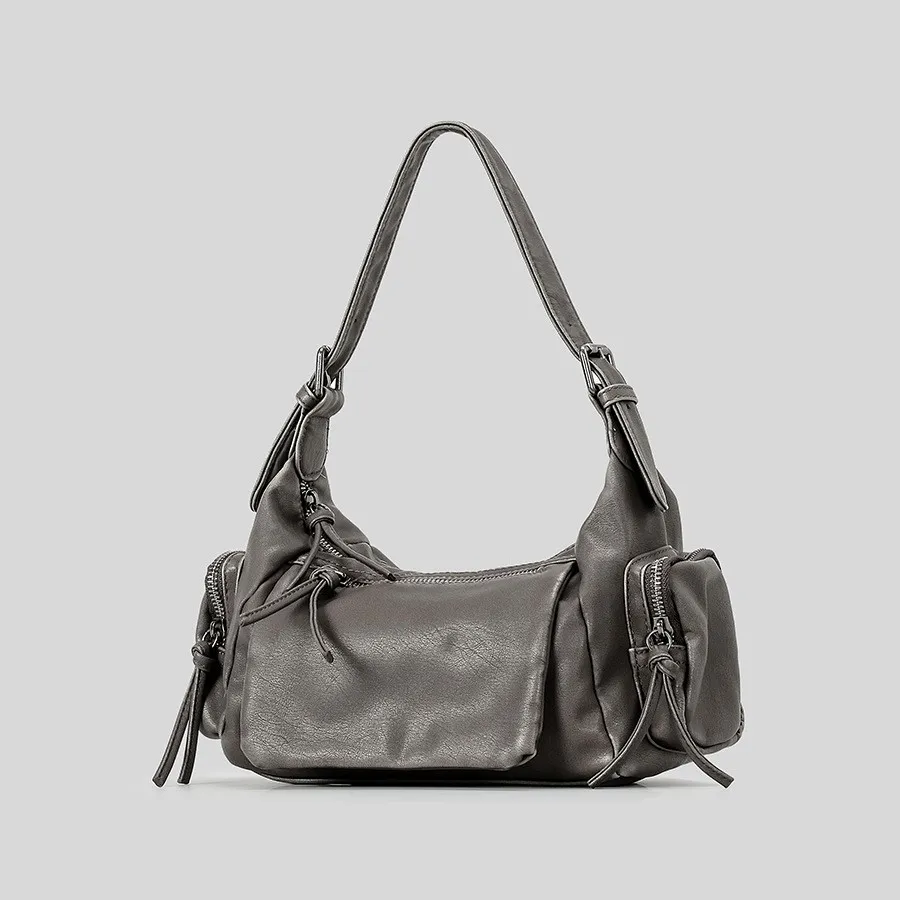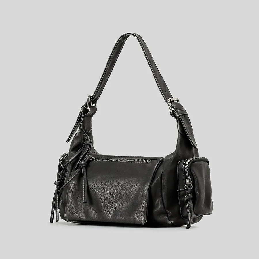 Available in neutral tones like black, charcoal, and earthy brown, the bag seamlessly complements a variety of outfits, from casual jeans to edgy evening wear.