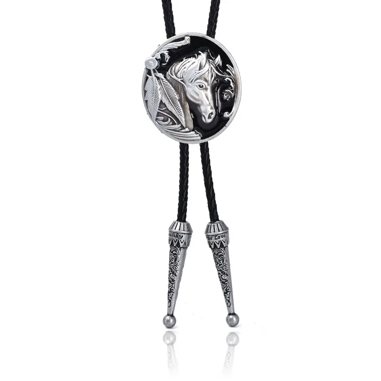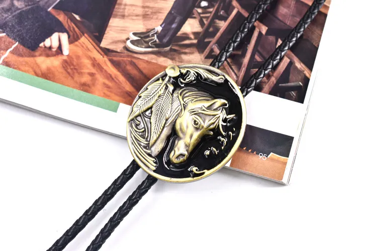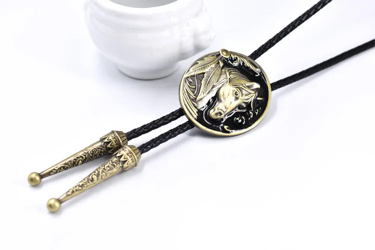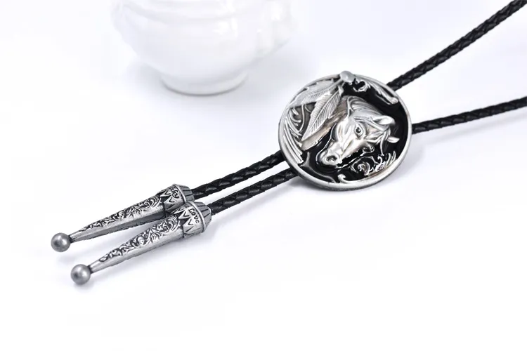 Punk Genuine Leather Polo Bow Tie Retro Horse Zinc Alloy Leather Necklace