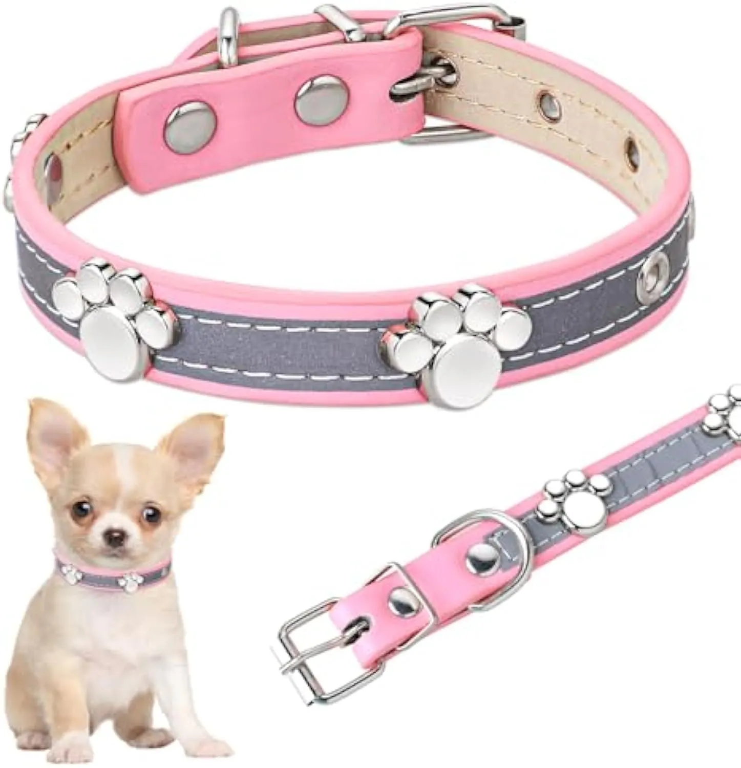 【Reflective】Reflective stitching is added to this dog collar. It shows a reflective effect when illuminated by a light source. Avoid being hit by passing vehicles when walking at night, protect the lives of our pets.