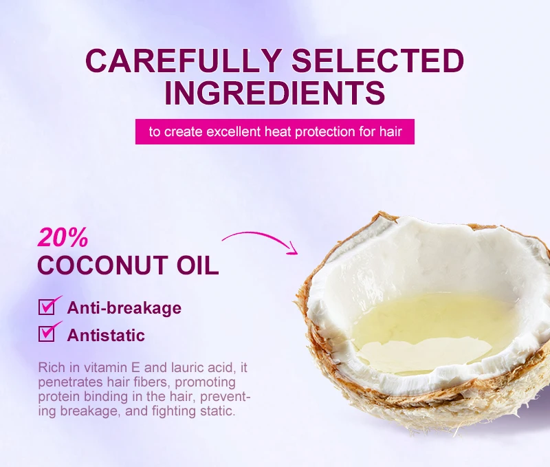Isolates excessive heat energy, effectively preventing hair breakage and cuticle damage during heating processes, reducing hair breakage to make strands smoother and easier to comb.